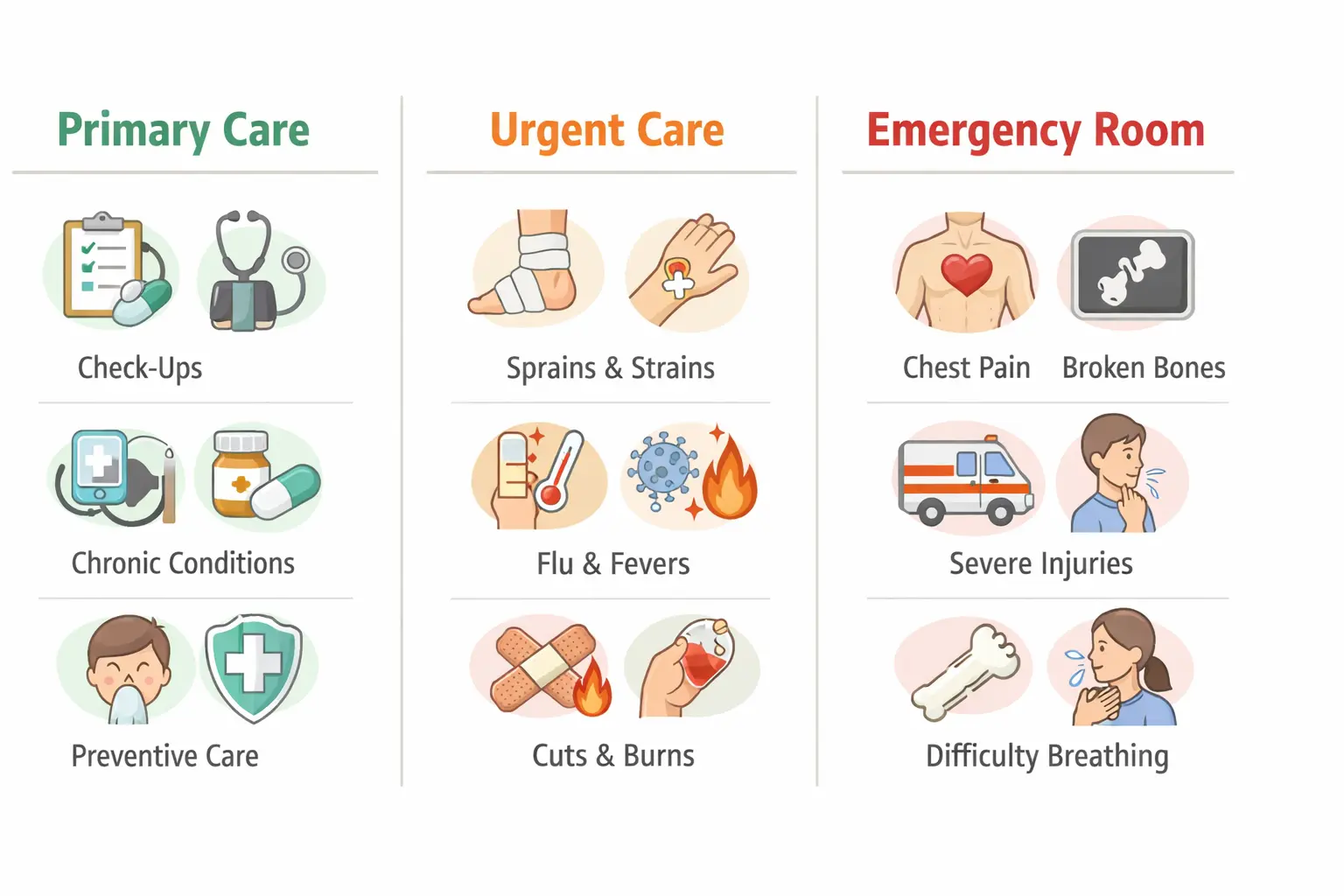 One of the most confusing parts of healthcare is deciding where to go when you need help fast. Choosing the wrong setting can lead to long wait times and much higher bills.
